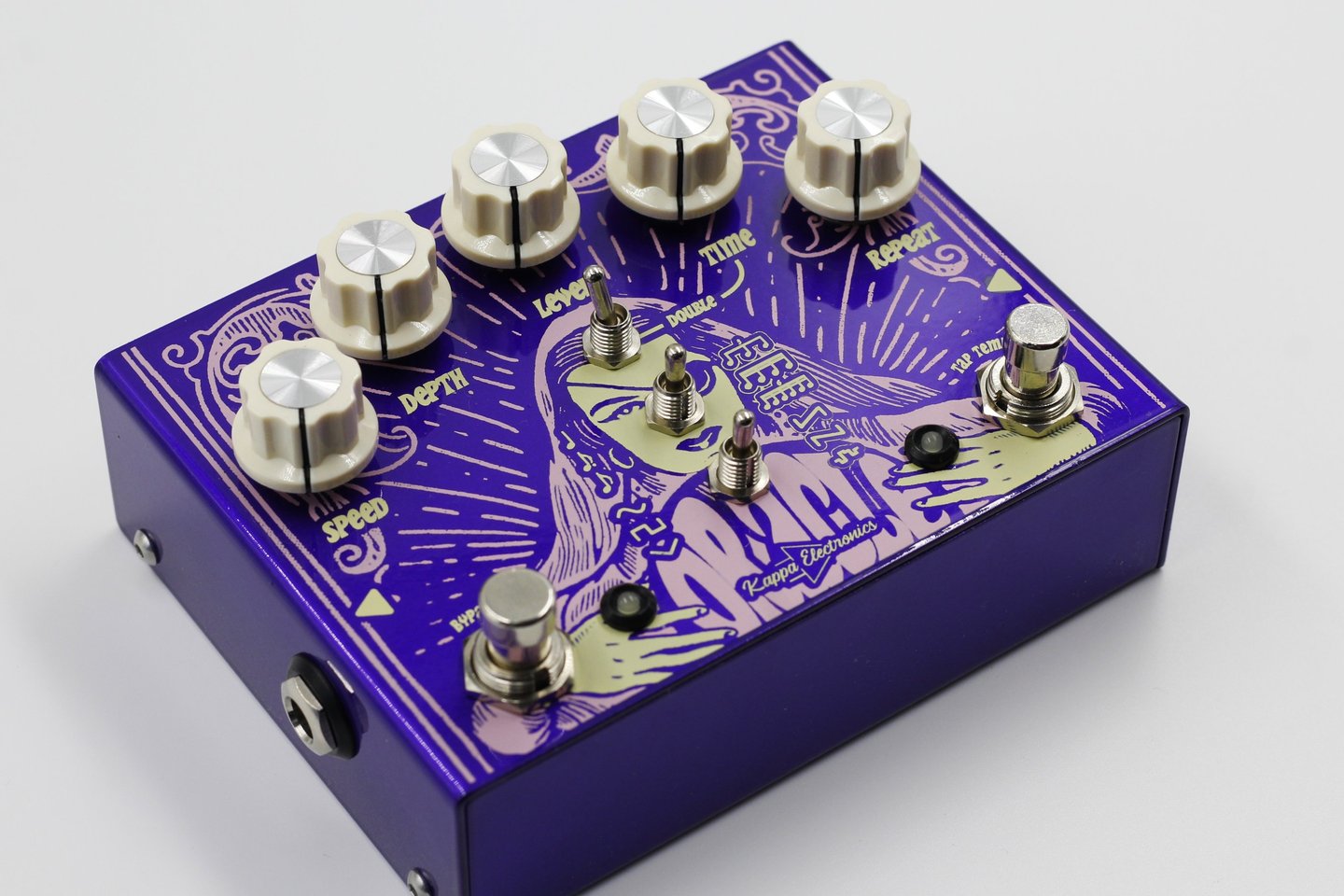 Oracle é um pedal de delay com tap tempo. Ele oferece modulação nas repetições, a capacidade de salvar 2 presets e selecionar entre 6 diferentes figuras rítmicas. Com 5 knobs e 3 chaves, incluindo controles Speed e Depth para a modulação, o Oracle combina versatilidade e facilidade de uso em um único pedal.